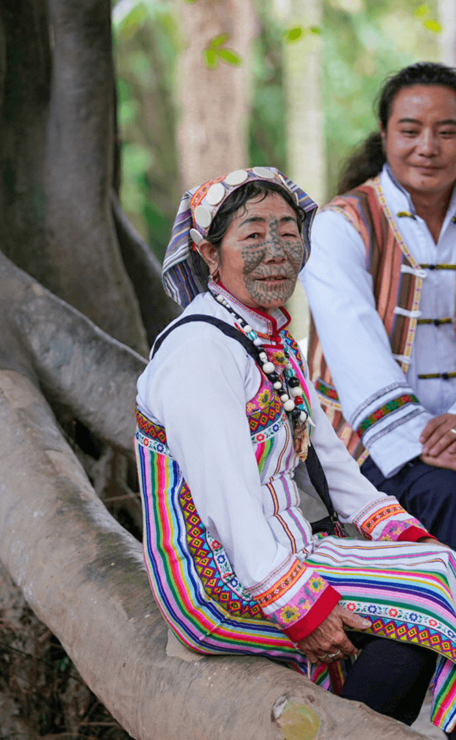 德昂族人口約1.7萬,主要分布在德宏州和保山市的潞西、梁河、瑞麗、隴川、隆陽等縣區。民居多為草排覆頂竹木結構的干欄式建筑,眼前的德昂村建筑納入了能容納數十人居住的德昂大房子,氈帽頂的小房子,還有頗具浪漫色彩的大公房、小公房……還建有“龍陽塔”標志及佛教奘房、佛塔。德昂族民間普遍信奉南傳佛教,民俗活動與佛事活動關聯緊密。潑水節、開門節、關門節是重大節日。德昂族服飾色彩豐富,口頭文學特別是民歌創作活動...